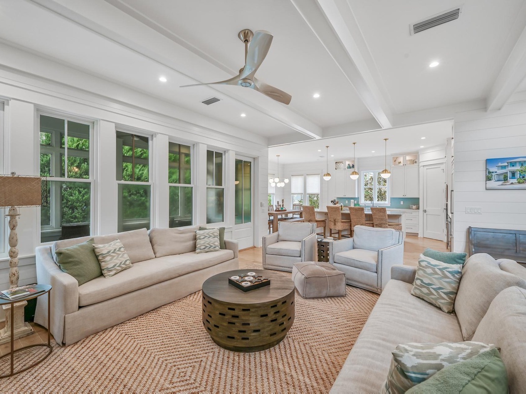 DETAILS: Resting Beach Face is a custom-built home with 5 bedrooms and 4.5 bathrooms that sleeps 12 comfortably. Located in the coveted neighborhood of The Preserve, this Grayton Beach home provides access to one of the best beaches on 30A, located .25 miles east of the community entrance. Guests will love this spacious 2-story home with access to the community pool and tennis courts.