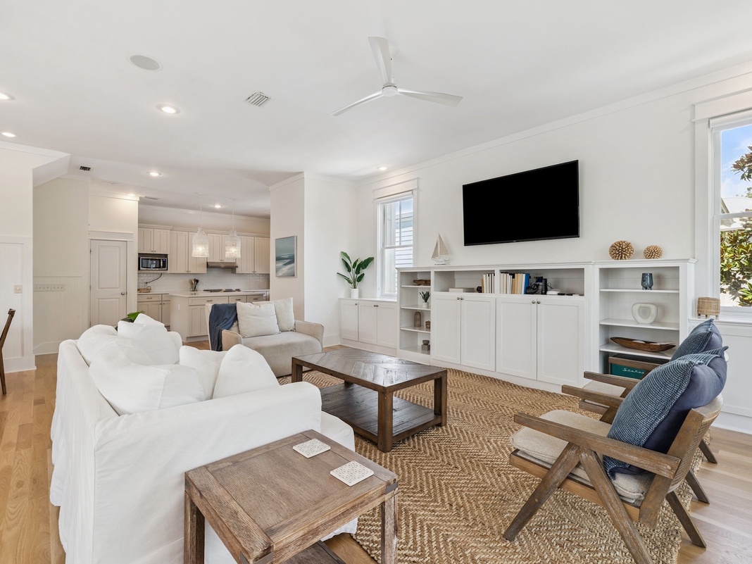 DETAILS: Experience an indulgent vacation filled with sandy feet, local ice cream, and breezy bike rides down the Timpoochee Trail at Salty Cottage, an aptly named Seagrove Beach home. Perched a short walk from the Gulf’s turquoise waters, this 4-bedroom, 5-bathroom property comfortably accommodates up to 14. Guests will love the 2 community pools, dedicated neighborhood beach walkover, and savoring the coastal air on the home’s peaceful porches at the start and end of each day.