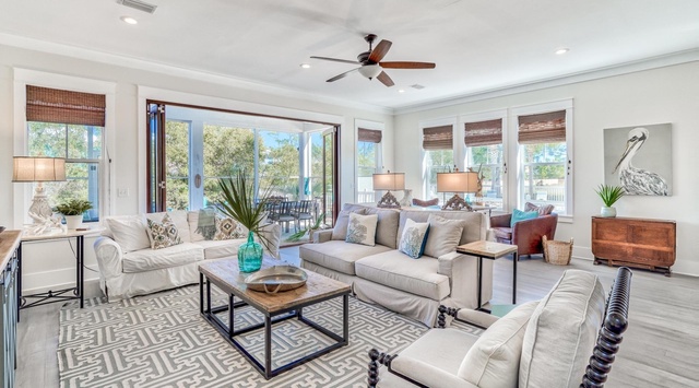 DETAILS: Escape to tranquility at Sand Dollar Retreat, a 4-bedroom, 4-bathroom Seagrove Beach abode that sleeps 12. Nestled in the Village of Sugar Beach, enjoy the community pool and multiple dining options within a short bike ride. Delight in lounging on the sun-soaked back porch or the sugar sand beach—2 blocks away!