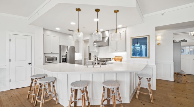 Traditional and coastal décor mix throughout this bright condo. A spacious combined living, dining, and kitchen area includes panoramic views of the dunes. Woven furniture and a cozy couch offer the perfect spot to relax and bask in the sunlight. The kitchen is made for gatherings, with gleaming countertops, high-end appliances, and an open-concept so guests can cook while still enjoying the company of family and friends. Gather at the dining table that seats 8 for a fueling breakfast before hitting the beach. Additional seating for 5 is at the breakfast bar and there’s a 4-person table on the wraparound porch. Step outside to enjoy a glimpse of the Gulf of Mexico! After a day of beach fun, retire to the primary bedroom with a king bed, private bathroom, patio access, and a 50” TV with cable. Across the way, there are 2 guest bedrooms—1 bedroom has a king bed and patio access, the other bedroom has a twin-over-full bunk bed. Both guest bedrooms include Smart TVs with cable and private bathrooms. A laundry room is near the entryway of the condo for easy laundering of swimsuits and beach towels.